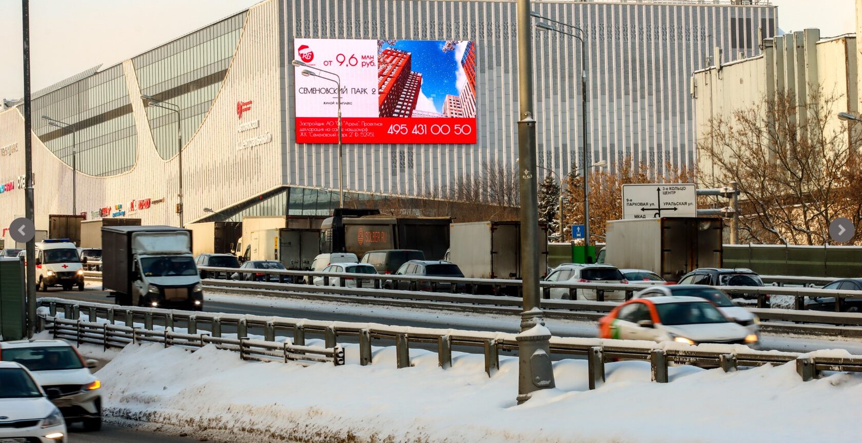 ЮАО, Медиафасад, г. Москва МКАД, 25 км, вл.1,4(параллельно МКАД ) ТЦ "КОНСТРУКТОР " Размер: 24х9 Площадь:216 кв.м.