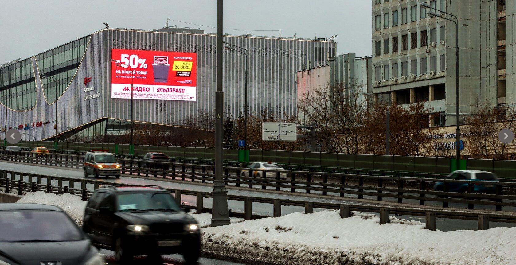 ЗАО, Медиафасад г. Москва, ТТК, Киевская улица, д.27, внутренняя сторона ТТК (по часовой стрелке) Размер:35 х 12 метров Возможно размещение 3D.Медиафасад находится рядом со съездом на Кутузовский проспект, в двух километрах от фасада — деловой центр «Москва-Сити»